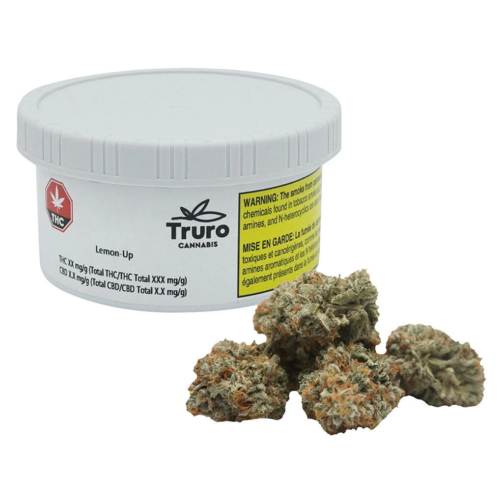 Lemon-Up by Truro Cannabis is a high THC sativa that hits like a fruit stand exploded — in the best way. A legacy cross of Lemon Tree x Purple Punch x Trop Cookies, this citrus forward flower bursts with bold lemon, lime and orange flavour, balanced by a hint of earth and gas. Grown indoors in Truro, Nova Scotia, Lemon-Up is true craft flower. Hang-dried, hand-trimmed, and slow cured for 28 days to lock in flavour and bring out its full terp profile. Expect dense, trichome coated buds with loud flavour and a clean finish. This is high-grade flower for those who appreciate terp rich citrus and craft level care in every way.