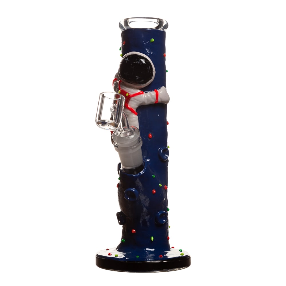 Blast off into a new dimension of dabbing with the 9" 5mm Arsenal Spaceglow Astronaut Dab Rig. This space-themed rig features a unique astronaut design that adds a playful and futuristic touch to your smoking setup. Crafted from high-quality, 5mm thick borosilicate glass, it offers exceptional durability and heat resistance. The 9-inch height provides effective water filtration and cooling, while the precision-engineered percolator ensures smooth and flavorful hits. Perfect for both daily use and as a standout piece in your collection, this dab rig delivers both style and performance.